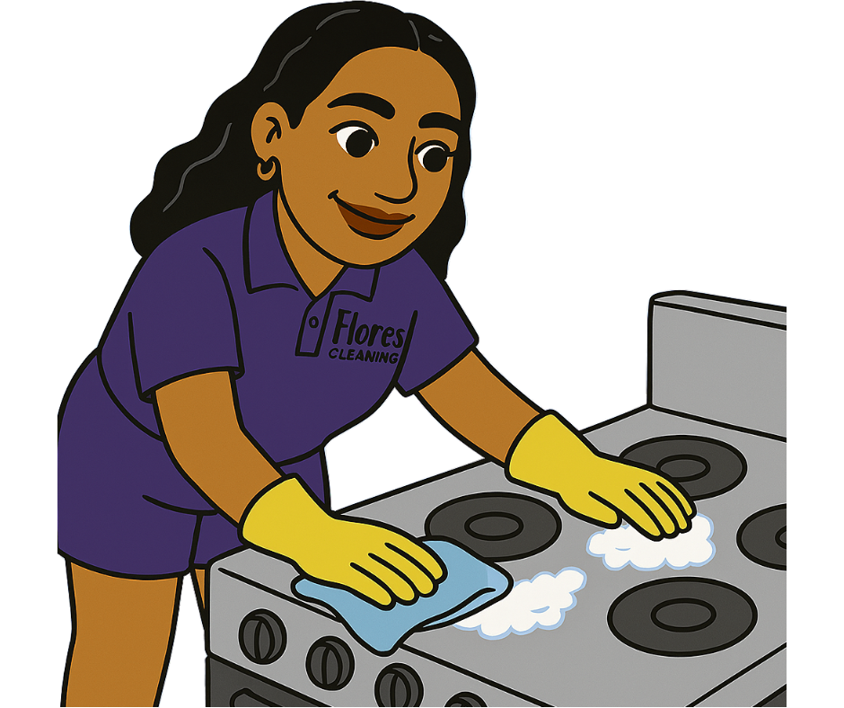 Cleaning the inside, outside, and under of the oven, microwave, refrigerator, and dishwasher.